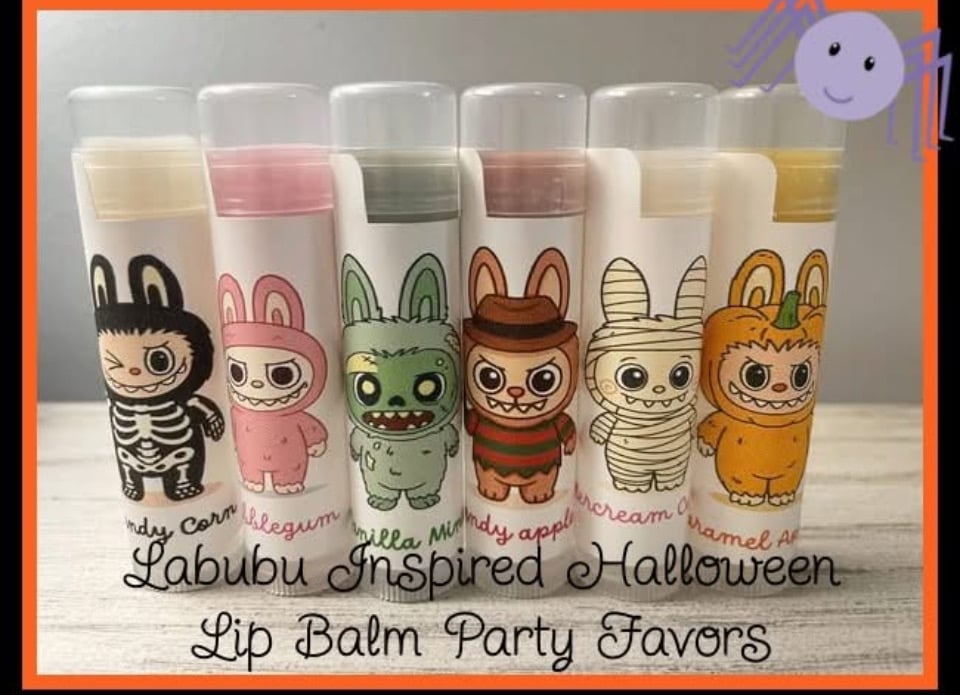 Celebrate your favorite ghoul or goblin with the cutest Labubu Inspired Organic Monster Themed Lip Balm Party Favors. These come in a set of 5 in your choice of flavors. We use all organic ingredients, BPA free tubes and top quality lip balm labels. You can let us know what you would like for flavors by including the information in the Notes to Seller Section when placing your order.