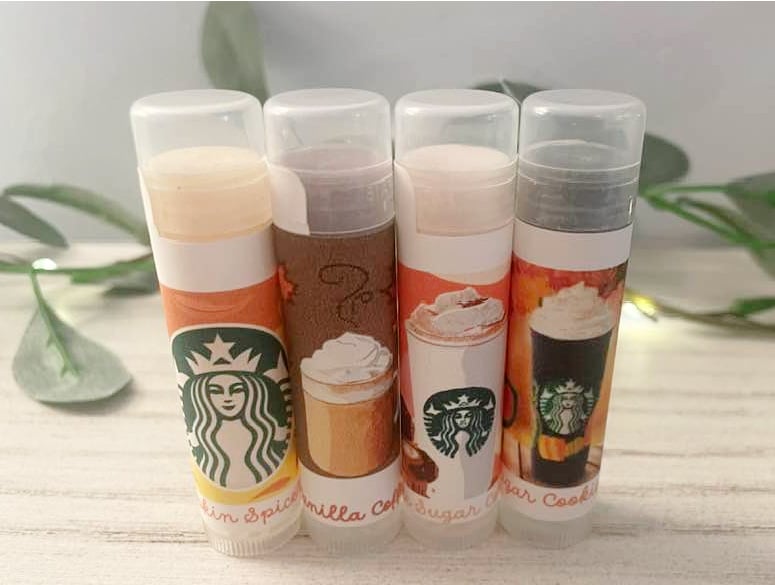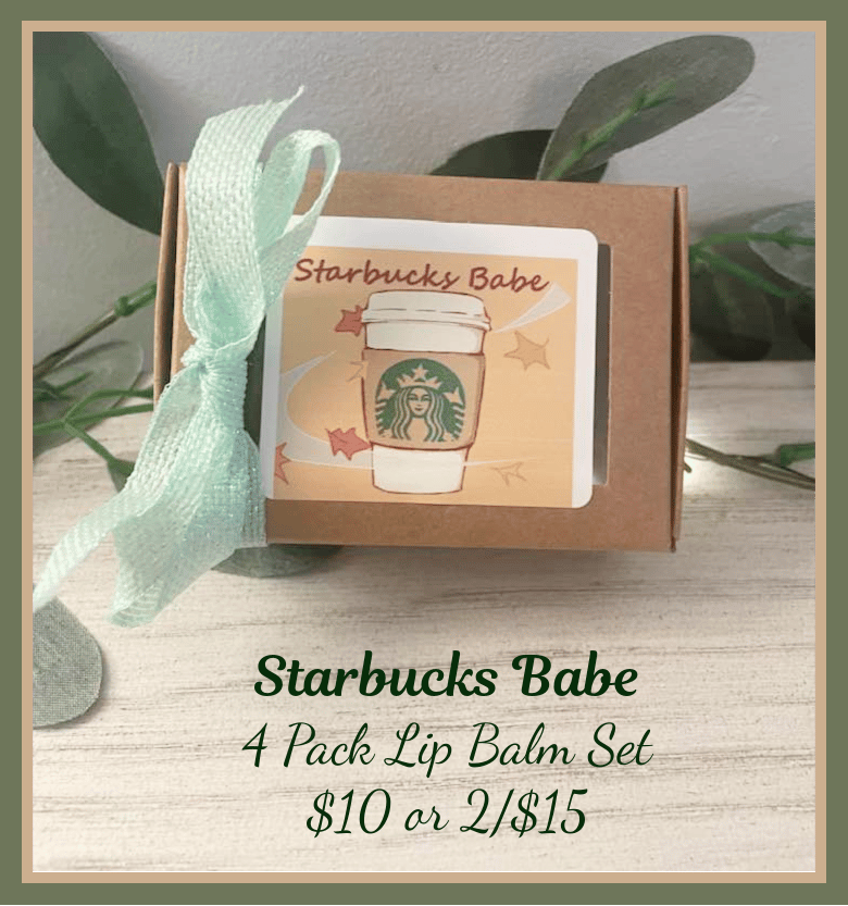 For all you "Starbucks" Lovers - our "Starbucks Babe" Themed Lip Balm Gift set which makes a great gift! Tuck a gift card in the back of the box and your coffee loving friend will be delighted! These include 4 Organic Lip Balm in your choice of our delicious fall flavors and they come wrapped in a brown paper gift box with a label on the front and tied with ribbon and it's ready to gift! You can let us know your choice of the (4) flavors by including your information in the "Notes to Seller" Section when placing your order!