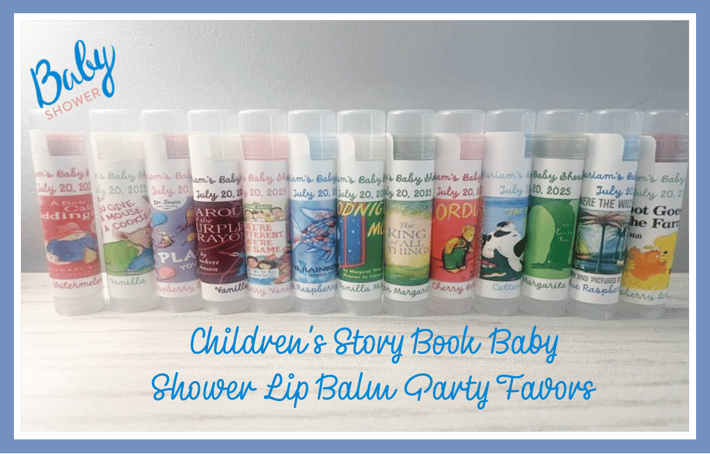 Celebrate your favorite parent to be with our Children's Story Book Themed Lip Balm Baby Shower Party Favors. These are all natural and organic. These come in BPA Free Tubes and we use top quality matte lip balm labels. Personalization is free and included and we can put the Mom to Be's Name and Shower Date. You can let us know what you would like for personalization and flavors by including the information in the Notes to SellerSection when placing your order.