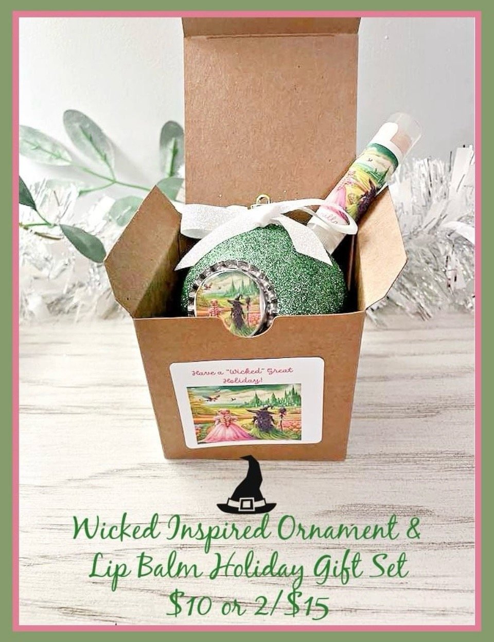 Wicked Inspired Handcrafted Ornament and Organic Lip Balm Holiday Gift Set